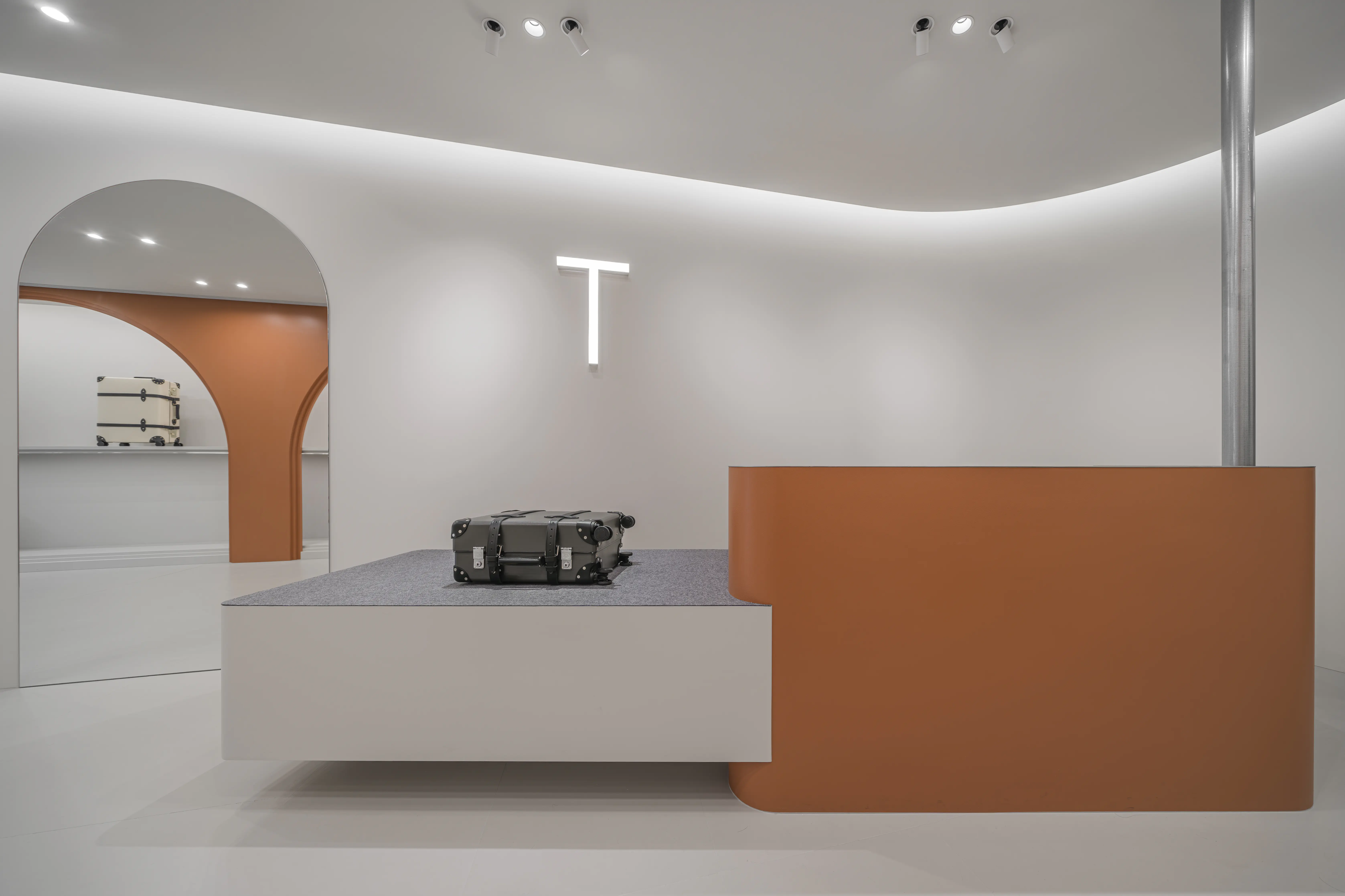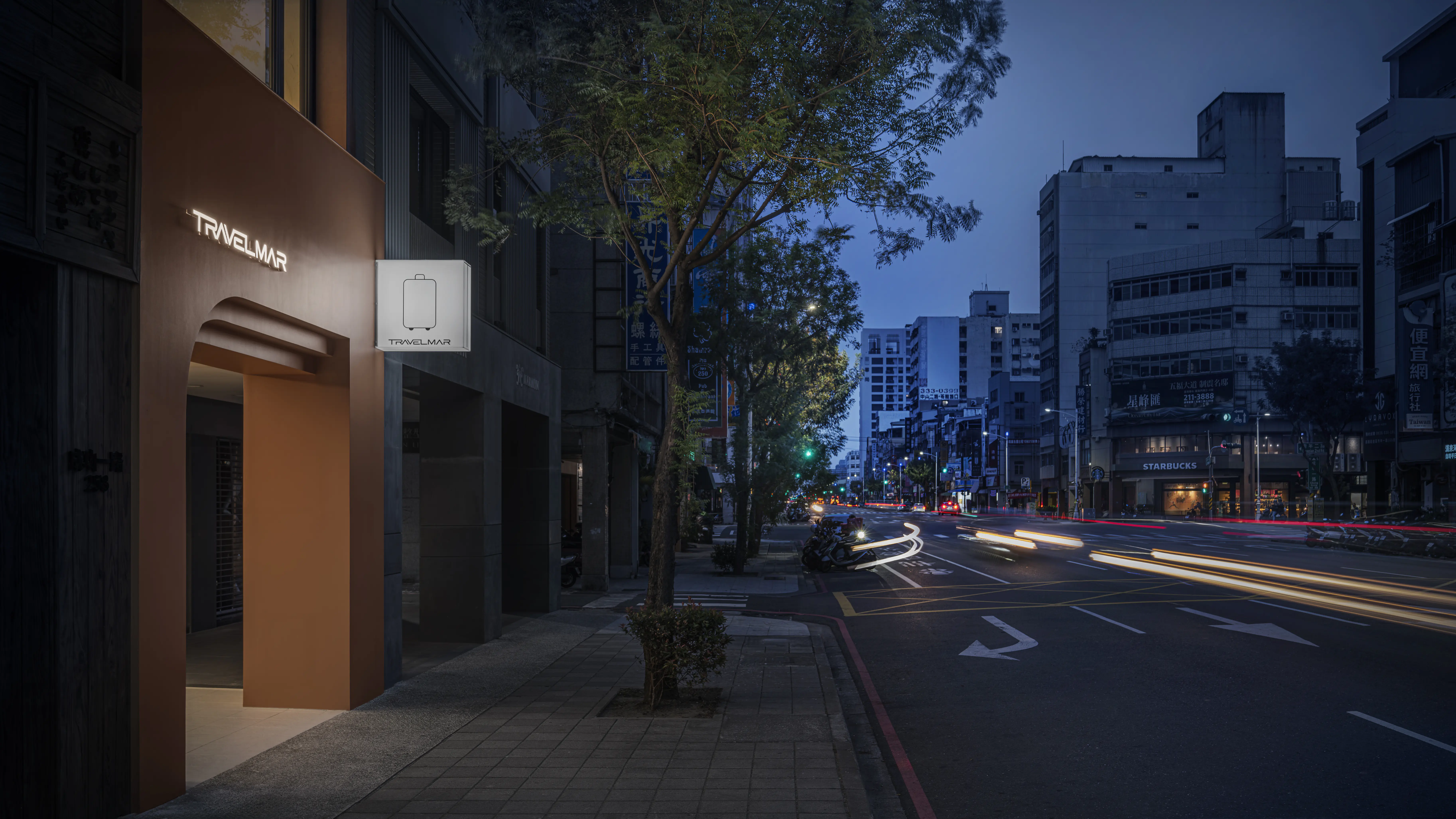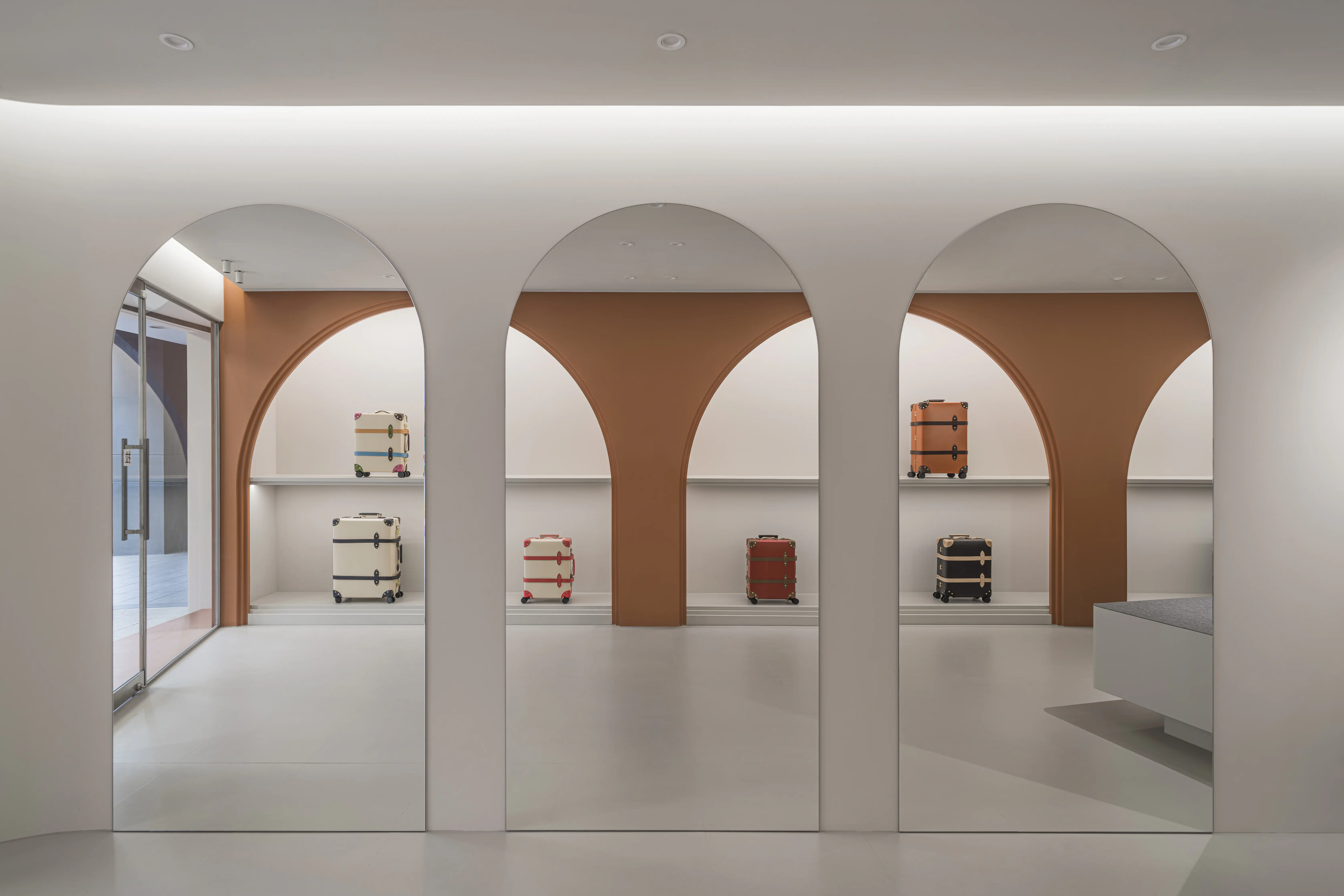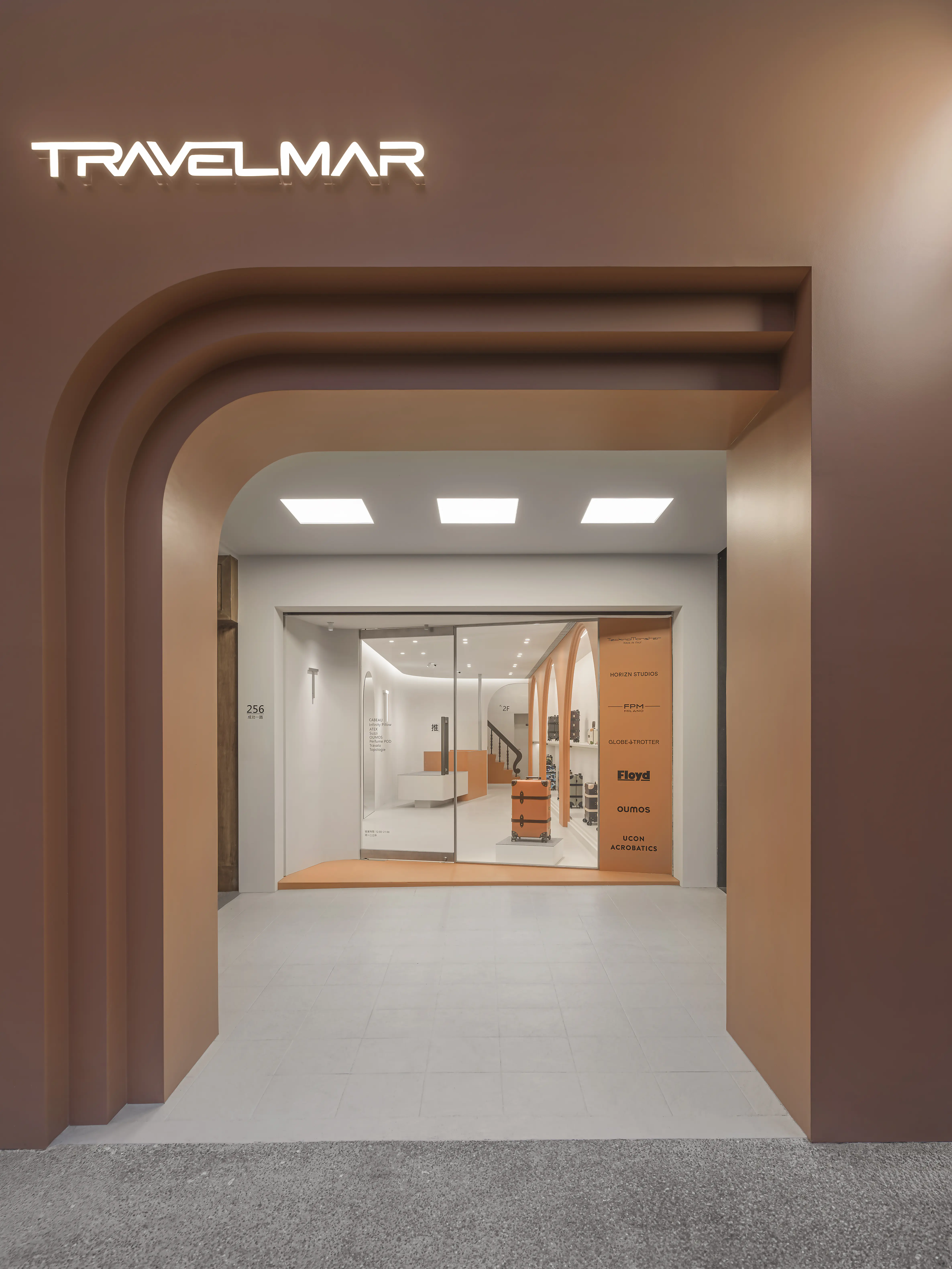 創立於1897年的英國手工行李箱品牌 Globe-Trotter,以硬紙纖維板打造堅固卻輕盈的經典,延續百年製作工藝,成為旅行黃金時代的象徵。位於高雄前金區的 Travelmar 以 Globe-Trotter 為展售主體,設計靈感取自品牌標誌性的弧線與圓拱語彙,在多品牌並存的場域中梳理主次,也回應在地脈絡。
